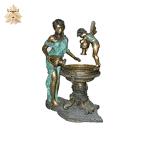 Modern açık bahçe Cast Metal çocuk çeşme bronz pirinç su çeşmesi kadın ve çöp melek heykel heykelleri ile
